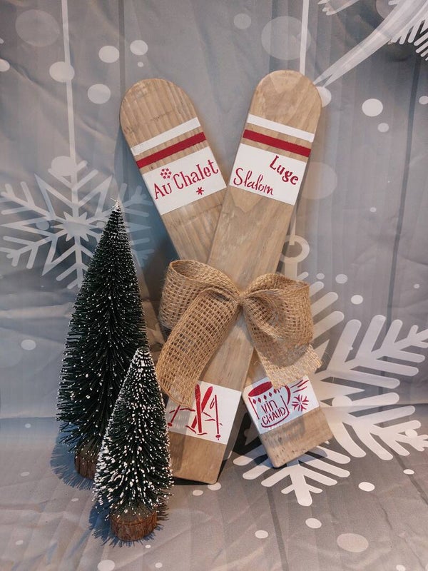 Décoration du ski à l'aide de pochoirs et de peinture.