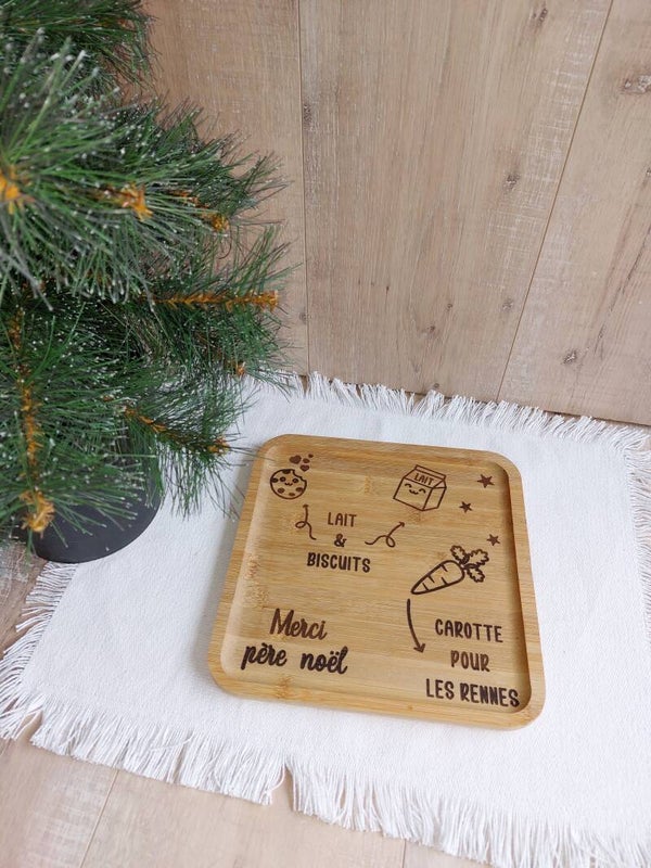 Plateau en bois personnalisé pour déposer près du sapin de noël, pour mettre un petit goûter pour le père noël et les rennes le soir du 24 décembre.